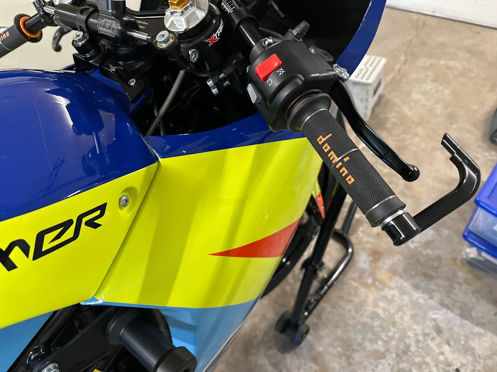 The Domino Racing MotoGP Grips are 125mm (5″) in length, but have a unique inner “lip” that can be easily removed with a sharp blade to reduce the length to 120mm (4 3/4″). These grips have open ends to work perfectly with bar ends. Both grips have 3 molded grooves for seamless safety wire installation.