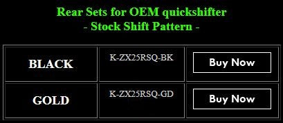 • Part# K-ZX25RSQ (pictured below) fits models with the OEM Kawasaki quickshifter, providing a dedicated stock shift pattern.